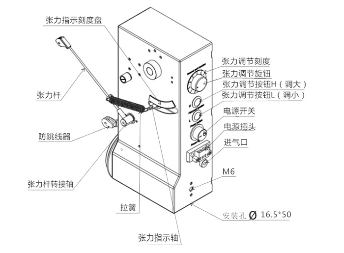本設(shè)備具有兩段張力功能,通過接入氣源實(shí)現(xiàn)兩段張力控制。