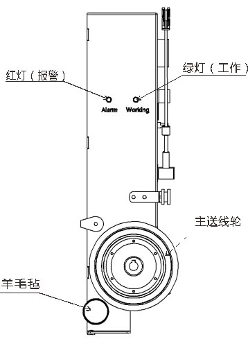 4、每次掛線時(shí)檢查羊毛氈的松緊度并調(diào)節(jié)羊毛氈的松緊度至線在送線輪上不打滑為合適至線在送線輪上不打滑為合適。