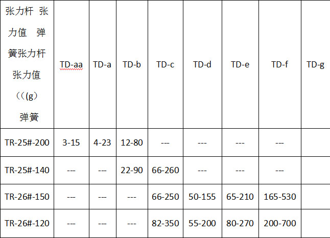 2、張力桿--彈簧選用對應(yīng)張力值(g)范圍